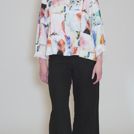 Abstract Print Linen Blouse, Pink Multi