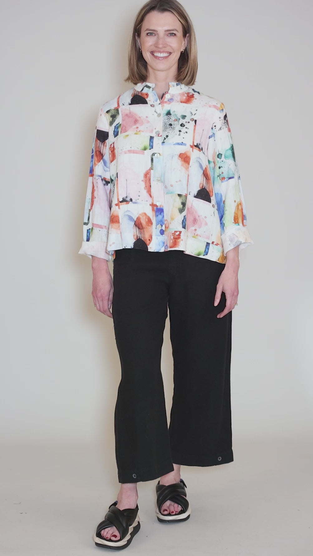 Made in a fine, long-staple linen, this summery top has a button-front placket, a set-in shoulder and long sleeves. The silhouette is a relaxed A-line, with a versatile, hip-skimming length. Running true to size.