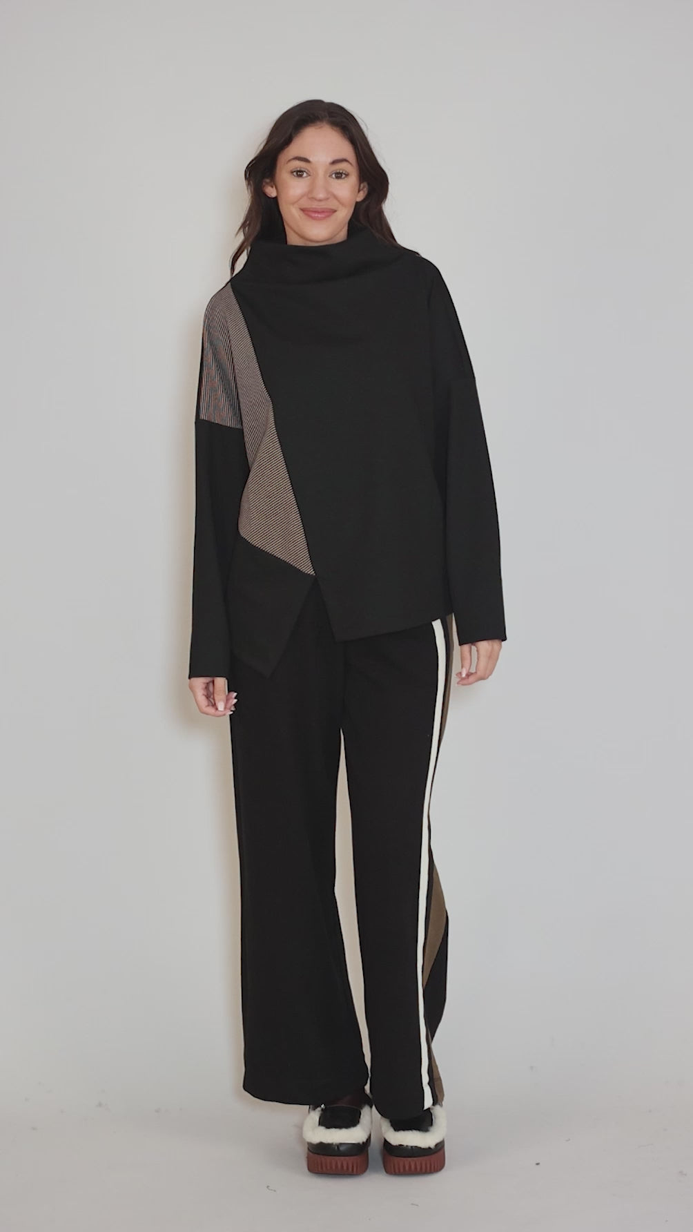 Coffee Break Funnel Neck Top, Black/Chocolate