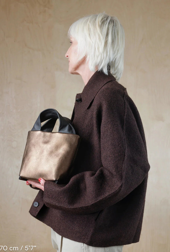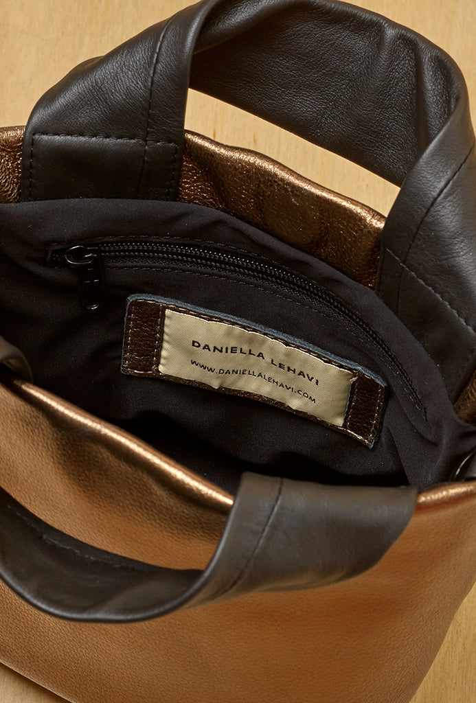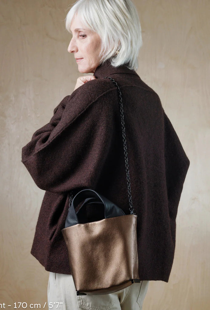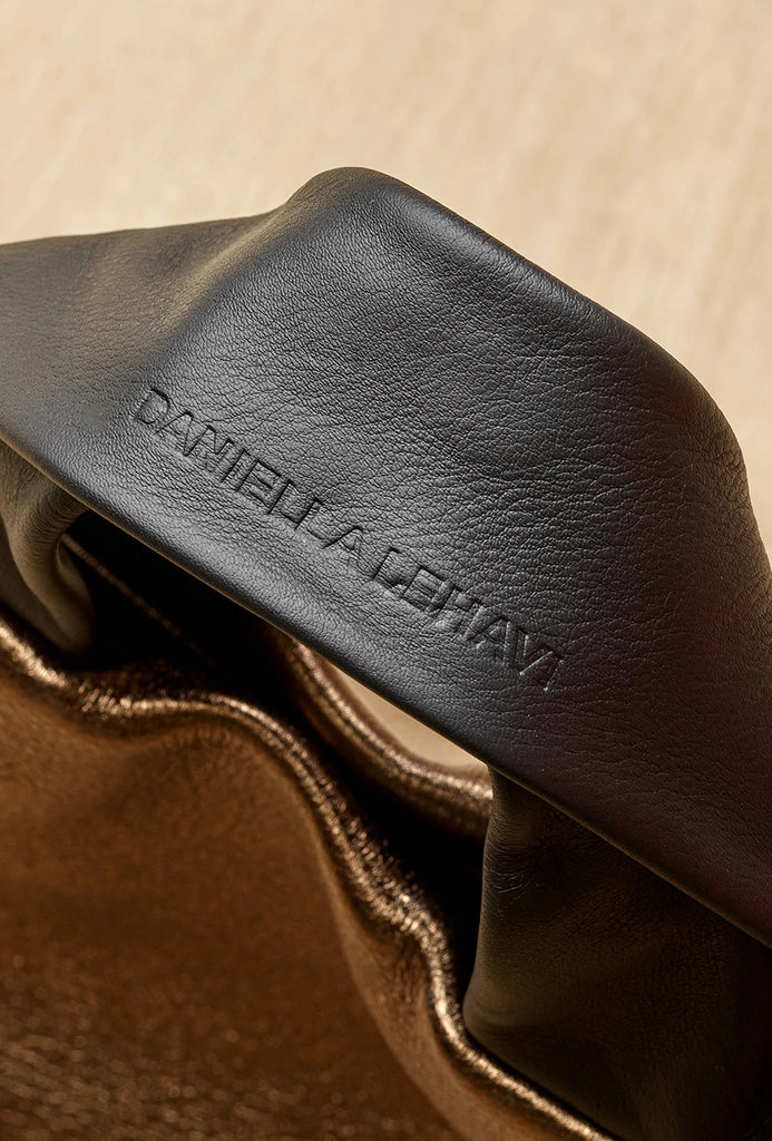 Alexa Mini is ideal for transitioning from day to night! A bag built around a soft shape that maintains a clean, precise silhouette, Alexa has two carrying options -- a soft, relaxed grip in chocolate leather, with a slim detachable chain strap option is included. Daniella Lehavi's signature metal feet add a subtle industrial touch that highlights the meeting point between softness and strength.