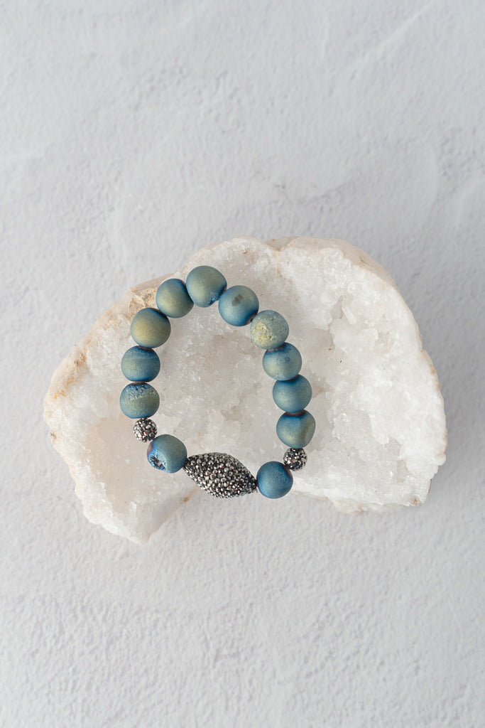 Soft matte beads in oceanic blue tones are paired with a sparkling pavé accent, creating a bracelet that’s both understated and elegant. The stretch design ensures a comfortable fit, making it perfect for everyday wear or effortless stacking with other pieces.