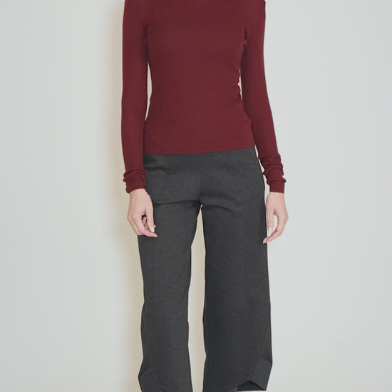 This slim-fitting sweater from Favorite Daughter has a set-in shoulder, long sleeves and a turtle neckline. The ribbed knit is quite body conscious, making it a nice counterpoint to the fuller bottoms already in your wardrobe.