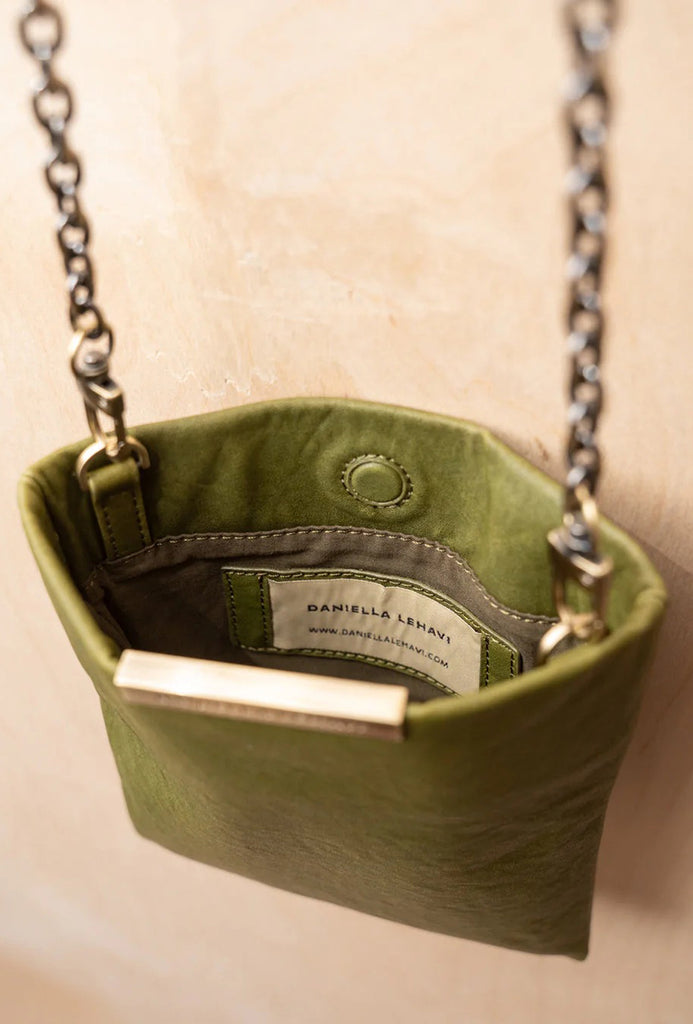 A small bag with a clean, precise design, Ariella features a leather strap interlaced with a chain for a sophisticated touch. The magnetic closure ensures easy use, while the refined structure gives it a polished and elegant look.