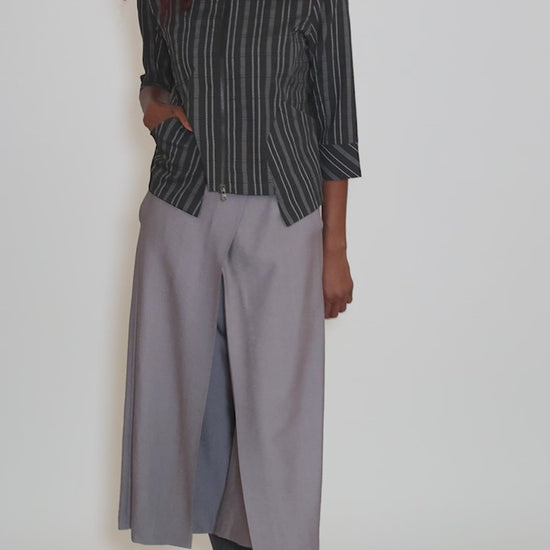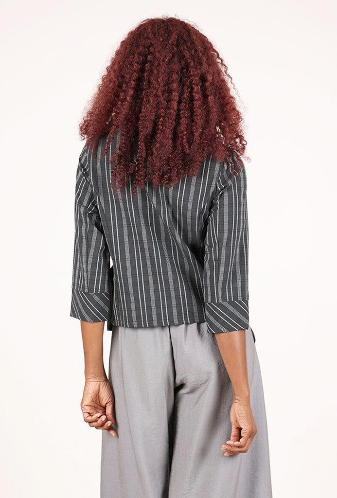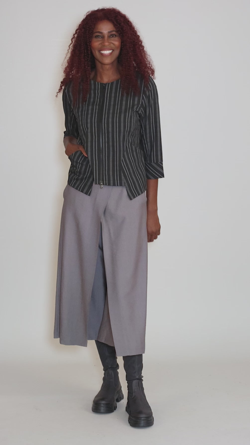 Crafted in a mid-weight, crinkled nylon, this close-fitting jacket has a rounded neckline, three-quarter-length sleeves and a zip-front closure. Patch pockets sit at the waist, creating an asymmetric hemline. We find this is running true to size to slightly small.