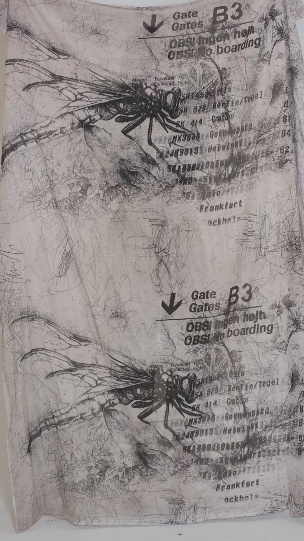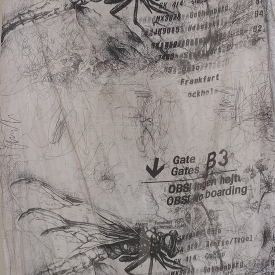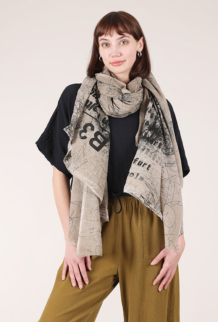 Made in a very fine cotton lawn, this oversized scarf features Studio B3's print of the season, an edgy insect theme. This version has been overdyed to extra-artistic effect.