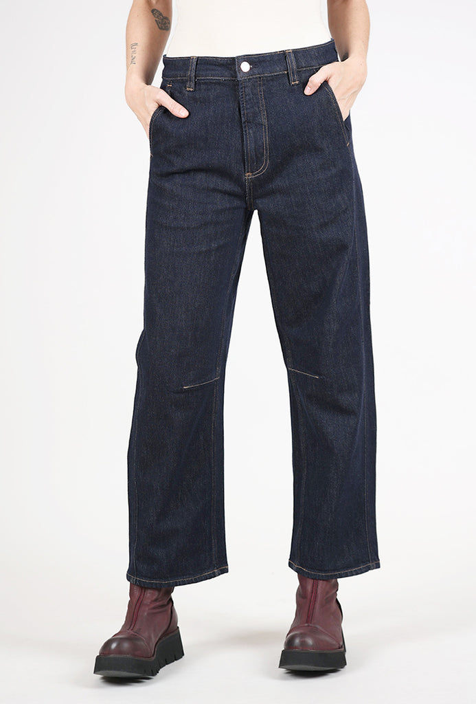 A bowed straight-leg with architectural intent, Beau delivers unique seamed crescent details and a cropped 27-inch inseam that creates dimensional interest. This version of Beau is made in a rigid, non-stretch denim in Nightfall, a deep dark rinse wash that captures the allure of midnight. We're told that Beau is the No. 1 favorite style of the Pistola's founder, Grace Na. Running on the large side.
