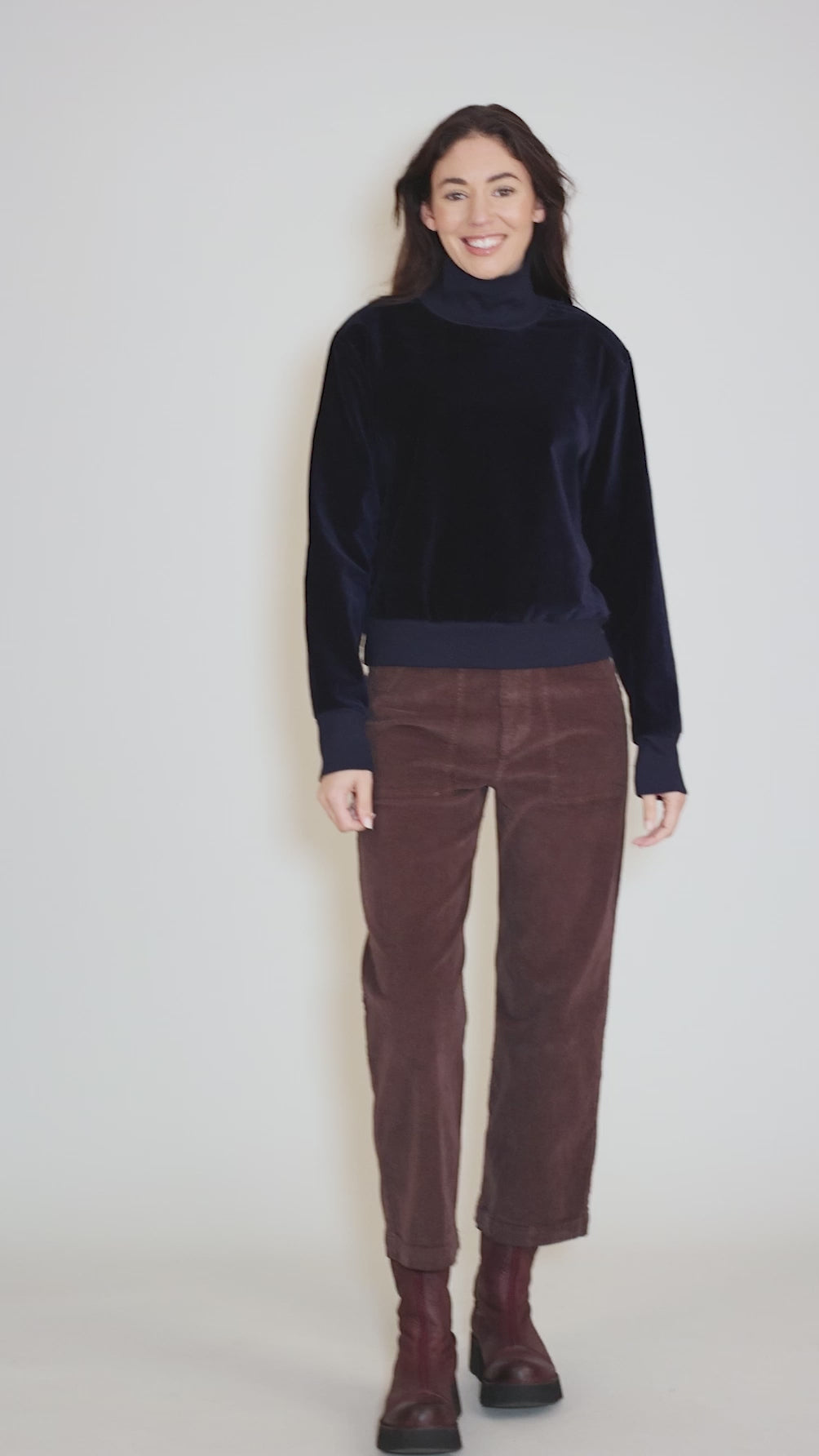 A corduroy version of our favorite Boiler pants? Wahoo! The corduroy here is soft and plush with innate structure, all the better to show off Boiler's clean lines. The rise is extra-high, with a zip/button closure at the waist and wider legs that are slightly cropped; patch pockets in front add to the utilitarian vibe.