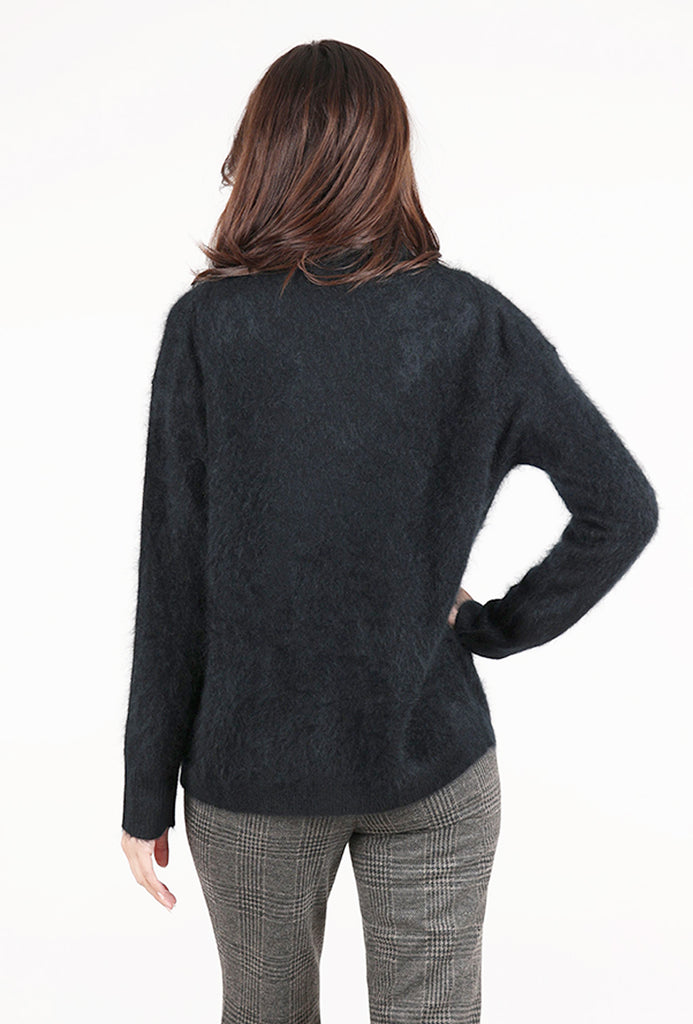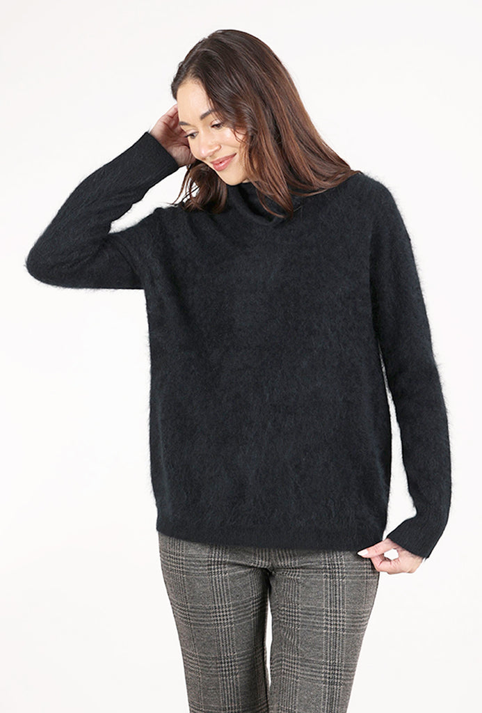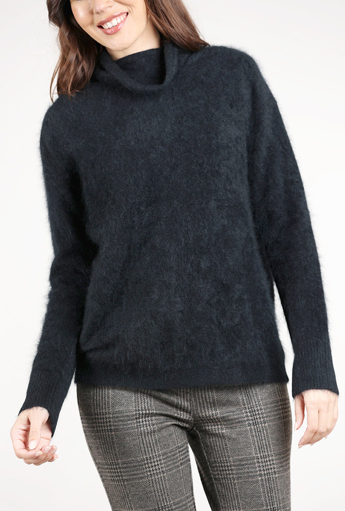 Crafted in a super-soft, highly lofted brushed cashmere, this classic pullover has a turtle neckline, with a set-in shoulder and long sleeves. The body is deliberately boxy, with a lightly ribbed hemline. So soft and cozy! Running a bit on the large side.
