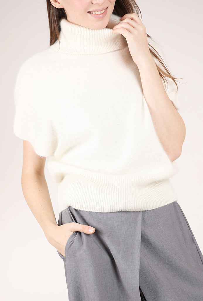 So terrific for layering! Crafted in a super-soft brushed cashmere, this relaxed pullover has a funnel neckline and short dolman sleeves. The silhouette is roomy through the bust and shoulder, tapering gently to the hips. Classic with a twist indeed.