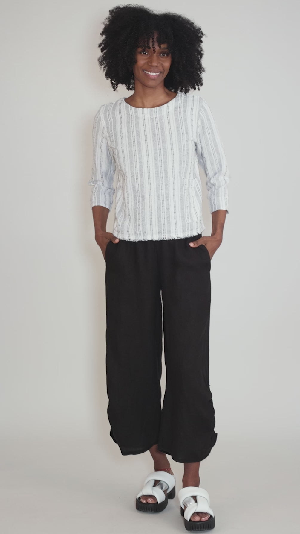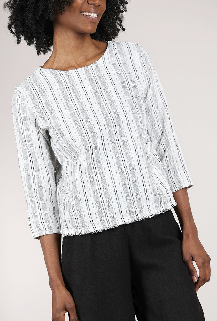 Bumpy Stripe 3/4-Sleeve Shell, Laundered