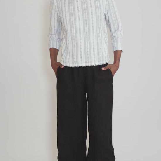 We love the fabric here, a soft cotton-linen blend with an unevenly striped pattern. This top has a rounded neckline and a boxy silhouette. A patch pocket sits on one side, and cute fringe trims the hemline. Like most pieces from Cut Loose, the fit is easy and relaxed.