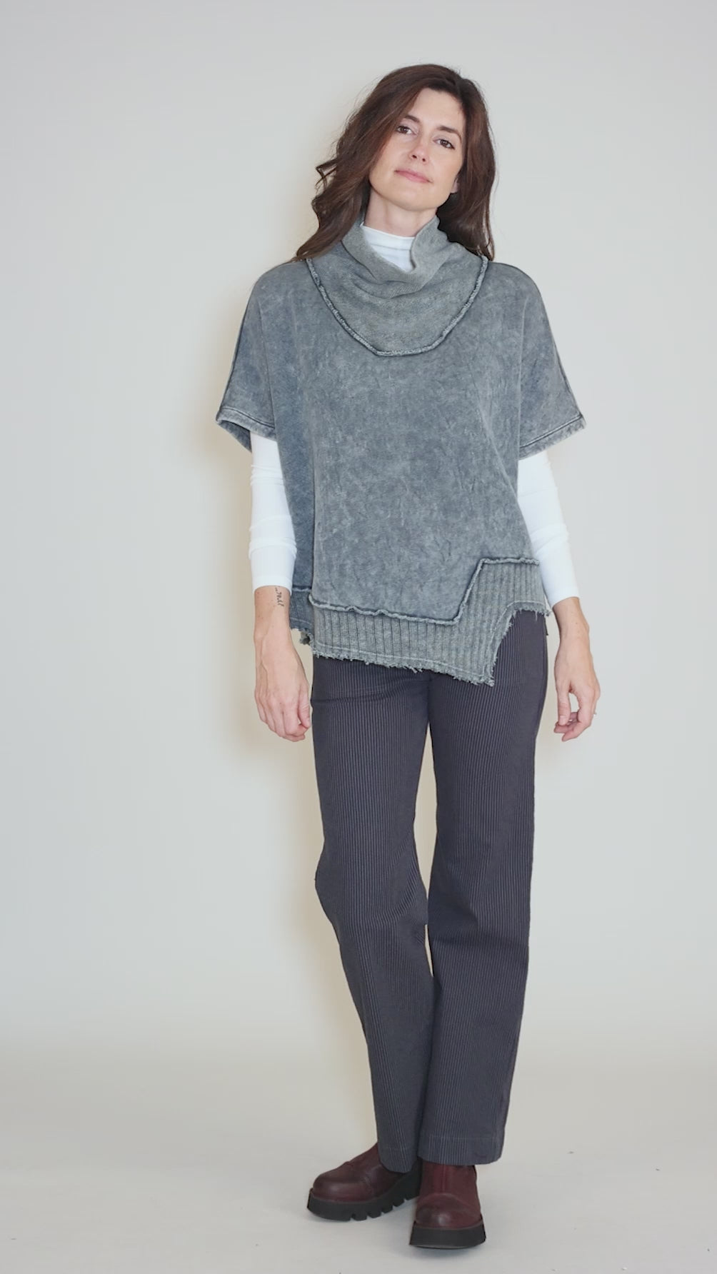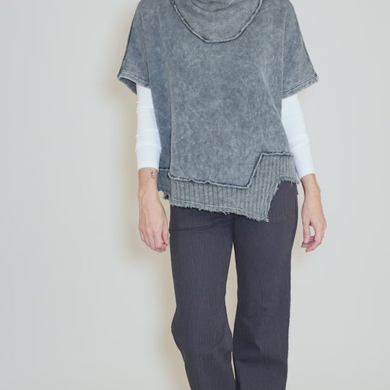 We love Cammy! Made in a plush sweatshirt fleece that's been garment-dyed for an instantly lived-in look, she has a short dolman sleeves and an asymmetric hemline. Contrast knit at the draped neckline and hemline adds to Cammy's cozy ease. Running a bit on the large side.