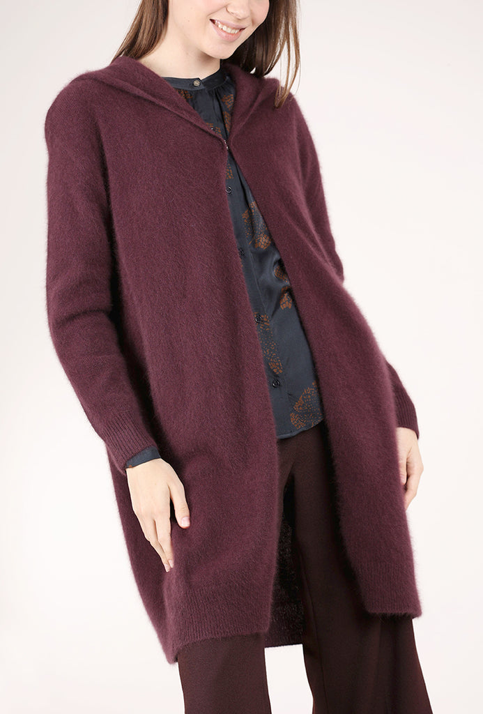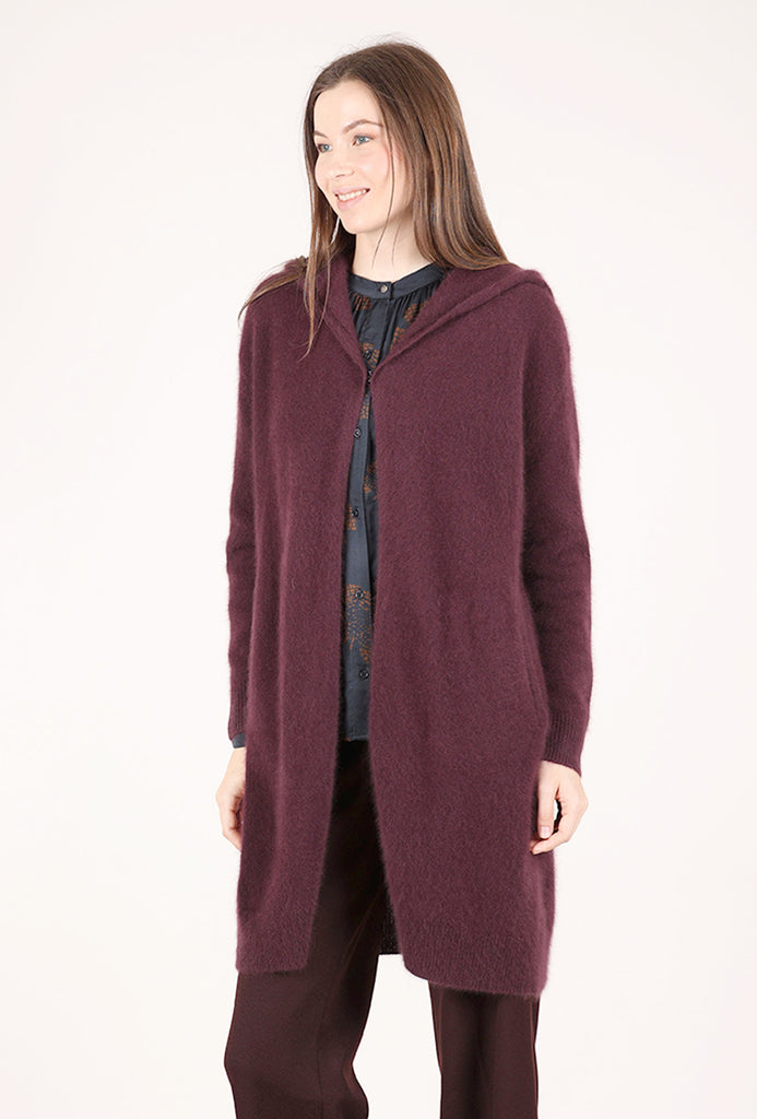 So luxe! Crafted in a super-soft raccoon-angora blend, this cardie duster has long sleeves and an open-front construction (with a single hook closure at the bust); an oversized hood creates a sporty vibe. Raccoon fibers are as soft as cashmere, with a more dimensional pile and less tendency to pill. We find this is running on the large side.