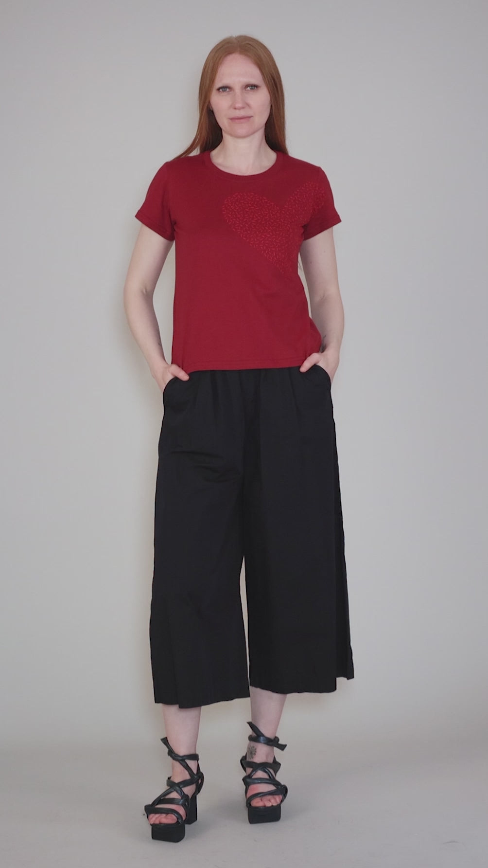 This darling T-shirt is crafted in a substantial cotton jersey, and hand-embroidered by artisans in Mexico. The mantra "Lucha Como Gato" (translation: Fight Like a Cat) is stitched at the right shoulder. It has a crew neckline, with short sleeves, a somewhat boxy silhouette and a hip-skimming length. We find this runs a bit on the small side.