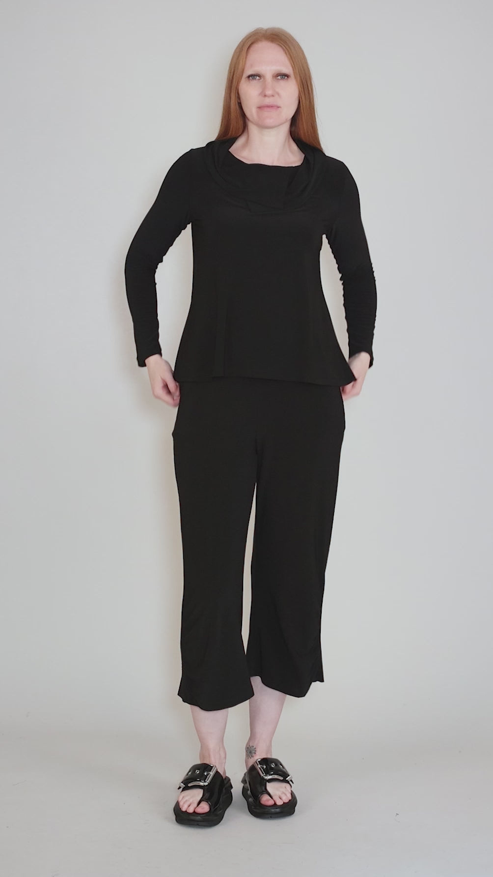 Made in a matte jersey knit, with a slippery-smooth feel and excellent drape. Jordana has a set-in shoulder, with a cowl neckline and long sleeves. The body is a trim A-line, offering an easy fit and effortless elegance.