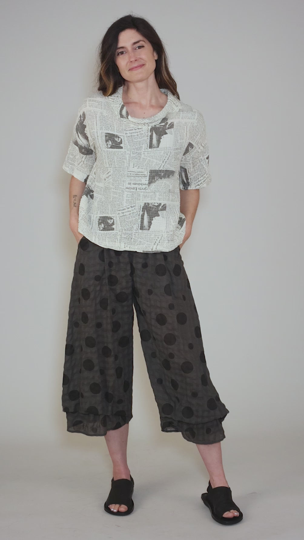 Done in a fine cotton lawn, these darling pants have an elastic waistband, with very full legs and tuck details that sit just above the hemline. Julieta also boasts slit pockets on the hips and a generous fit.