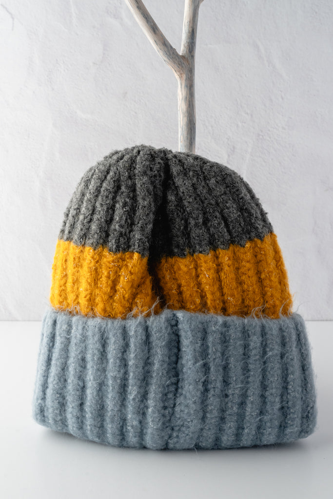 Crafted from a soft wool blend, this chunky knit hat features a vibrant multi-color striped design, making it a fashionable accessory for both men and women. The ribbed texture adds a cozy touch, ensuring warmth in cold weather.