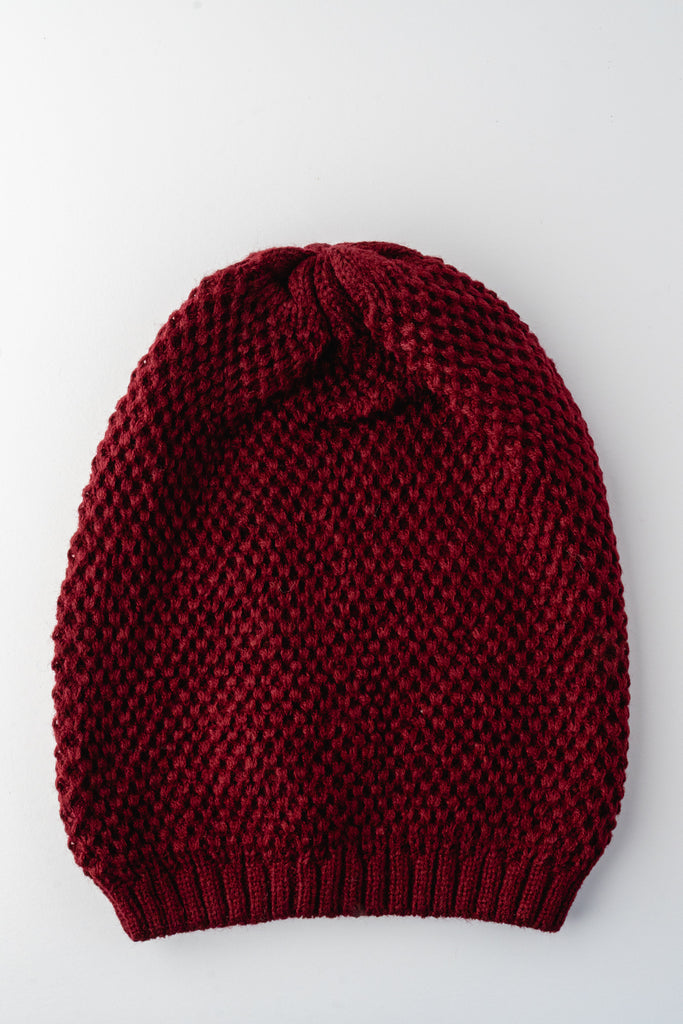 Featuring a soft waffle-knit texture and slouchy, oversized design, this oversized knit beanie offers both warmth and casual style.
