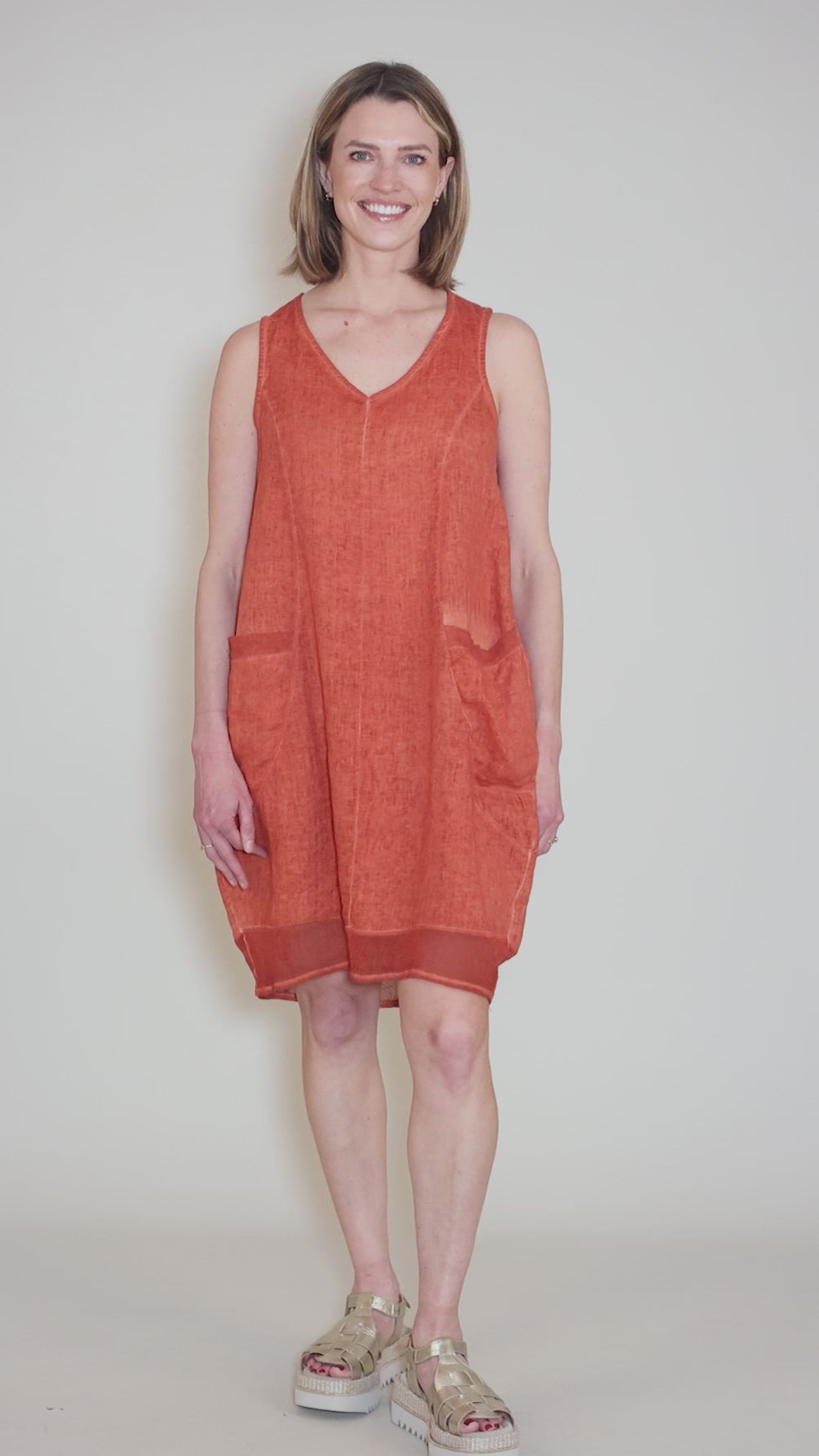 Contrast Hem Shift Dress, Terracotta