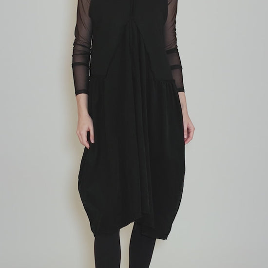 Cotton/Cord Ruched Front Dress, Black