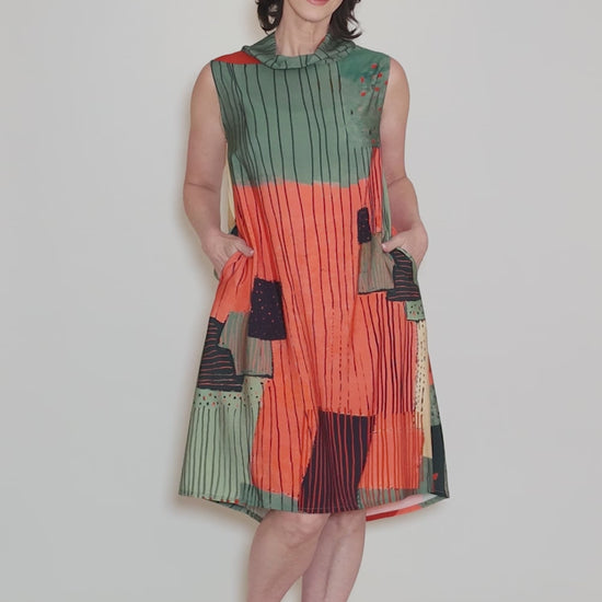 Our in-store customers love 3 Potato's woven viscose fabric -- extremely light on the body, but with enough texture to avoid clinginess. This versatile dress is sleeveless, with a short funnel neckline and a full, A-line silhouette; slit pockets sit on the hip. We find it can dress up or down with ease. The fit is quite relaxed and a bit oversized.
