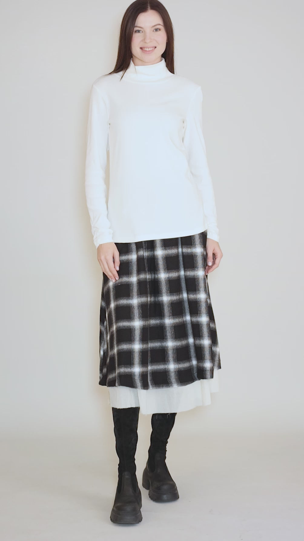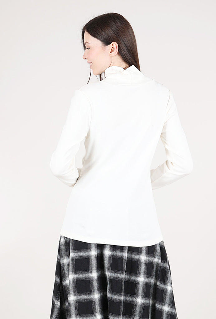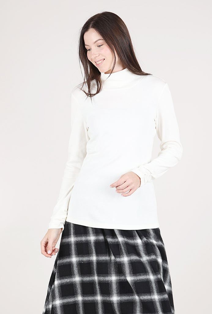 Done in a soft cotton knit, this easy top has a funnel neckline, long sleeves and a relaxed silhouette. While it's terrific under jackets and cardies, it can easily stand alone. We find this is running true to size.