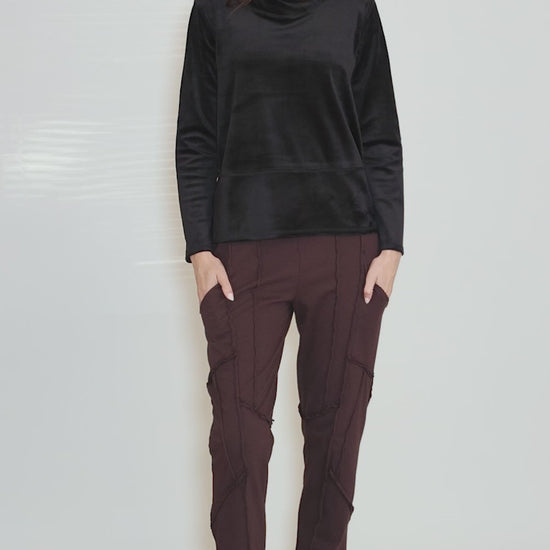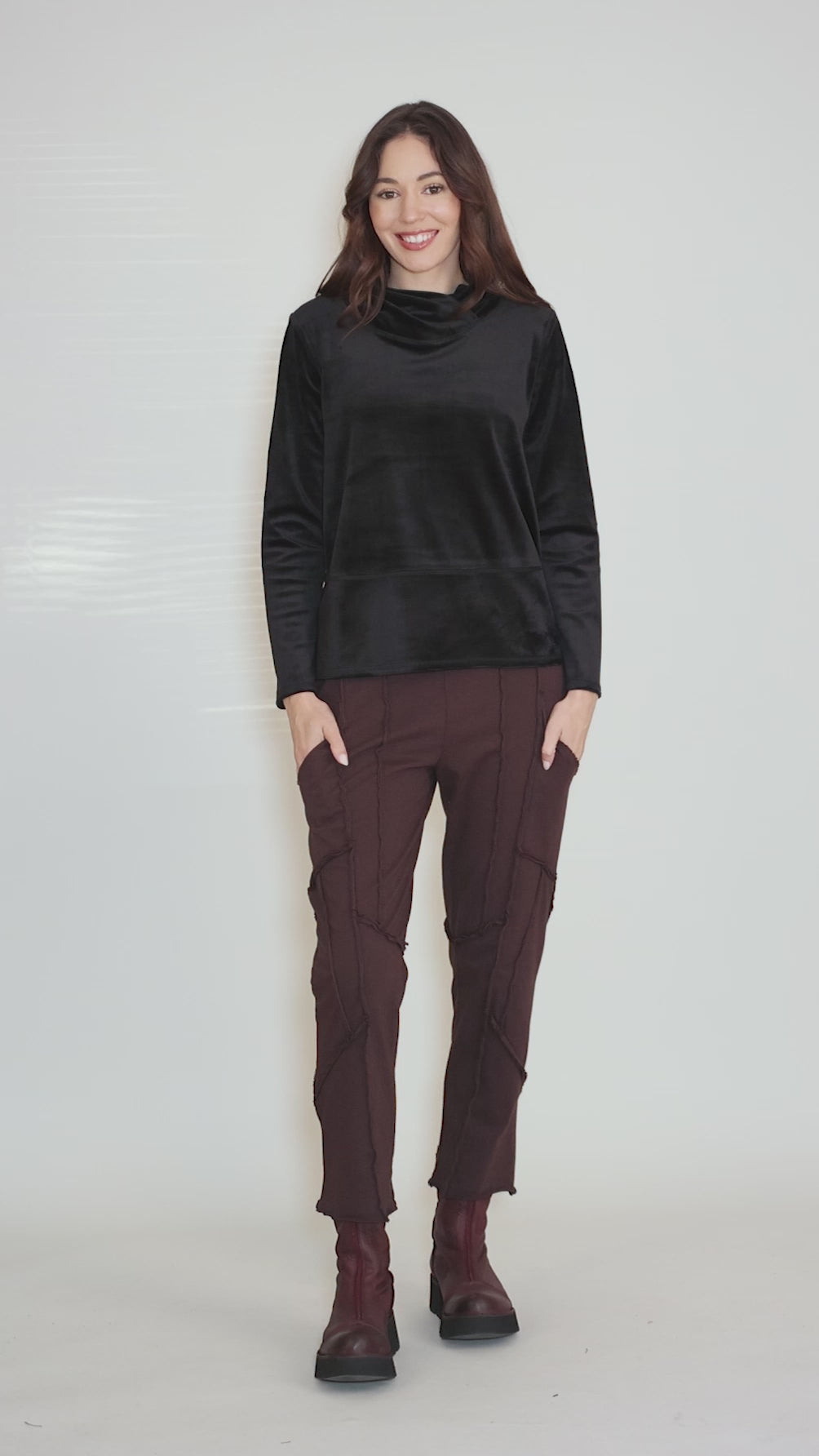 Made in a soft velour, this easy top has a short funnel neckline, with a set-in shoulder and long sleeves. The body is a trim A-line, with a hip-skimming length and a relaxed fit. Running true to typical Habitat sizing.