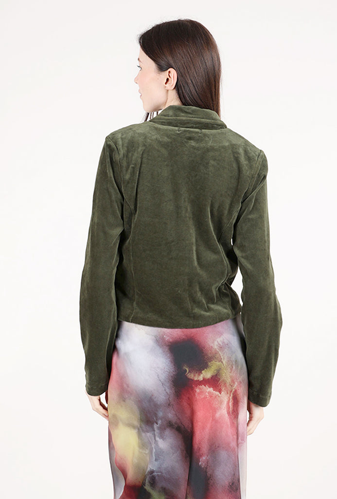 Cropped Velour Jacket, Elm Green