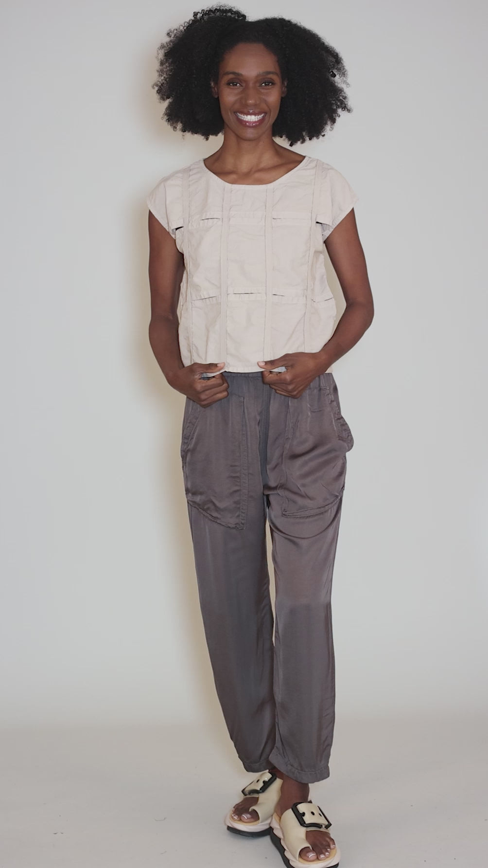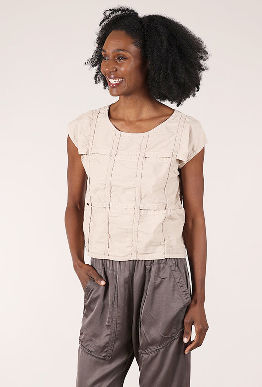 Crosswind is SO cool! It's made in a soft, woven organic cotton, with a rounded neckline, cap sleeves and a deliberately boxy shape. But the headline here is the fabric treatment, which has a woven look, complete with open-air slashes throughout. Yes, you may well want to wear it over a tank, but the effect is surprisingly modest with the proper undergarments! Running true to size.