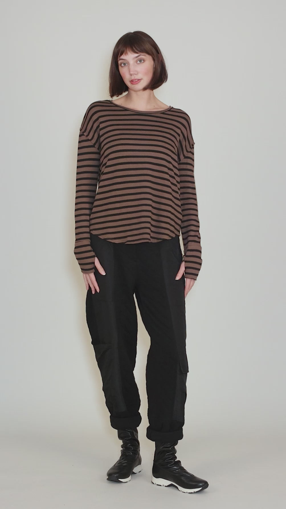 Black Stripe Thumbhole Top, Cola