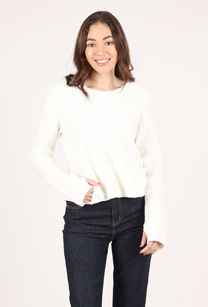 This sleek, boiled-wool piece can be worn so many ways! It features a rounded neckline, with a set-in shoulder and extra-long sleeves complete with thumbholes. The hip-skimming length is quite versatile, and slit pockets sit on the hips. In back, detachable straps create a sexy peek-a-boo effect. But the snaps can be removed, and the snaps joined to create a more conventional-close fitting top. Join a couple straps to create a belt. And even more of a bonus? It can be worn on both sides. Watch the video for more ideas!