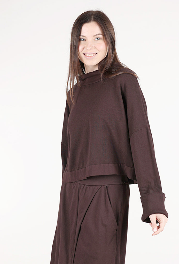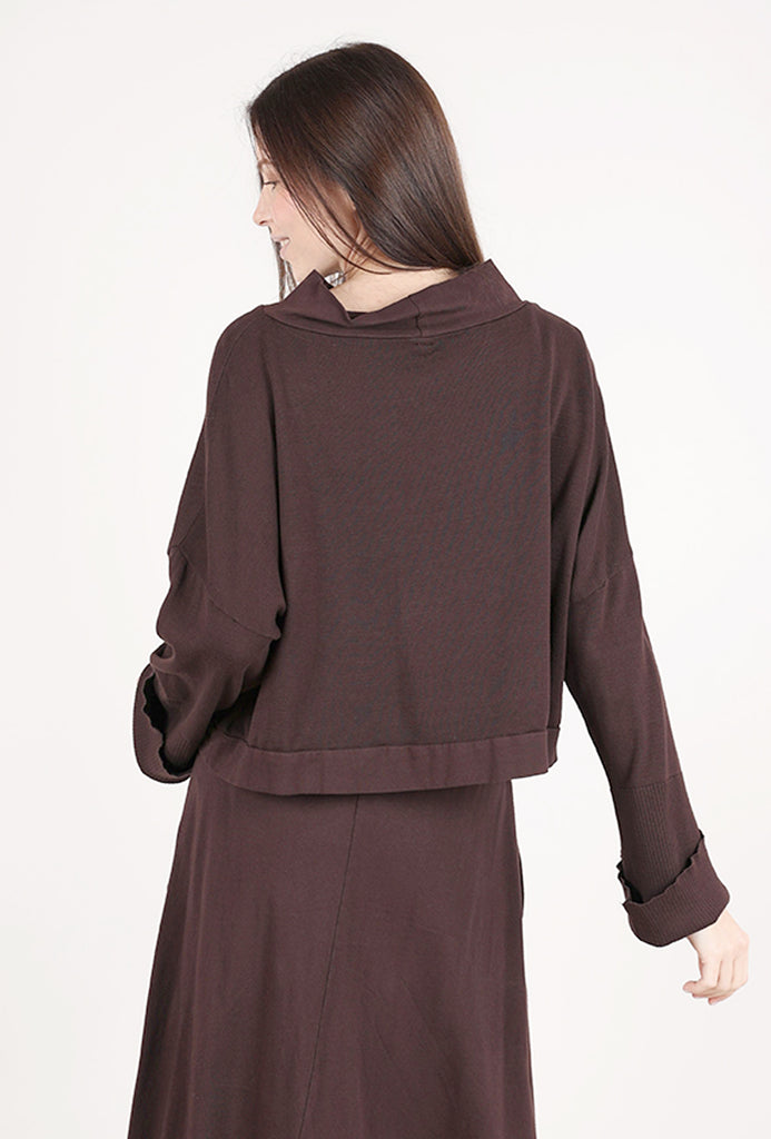 We adore the Ardent top! It combines cotton jersey knit details with a lightweight sweater-knit body. Ardent has a wider funnel neckline, with a drop-shoulder construction and extra-long sleeves that end in a loosely knit trim. The silhouette is slightly cropped, making it a terrific partner back to higher-waisted bottoms and skirts.