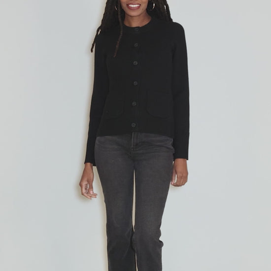 Dani marries the ease of a sweater with the structure of a blazer. Crafted in a substantial, soft blend of cotton, wool and cashmere, the sweater has a rounded neckline, with long sleeves that bell at the wrists; the knit is ribbed through the deep cuffs and waistline for a figure-conscious fit-and-flare silhouette. Running true to size to slightly small.