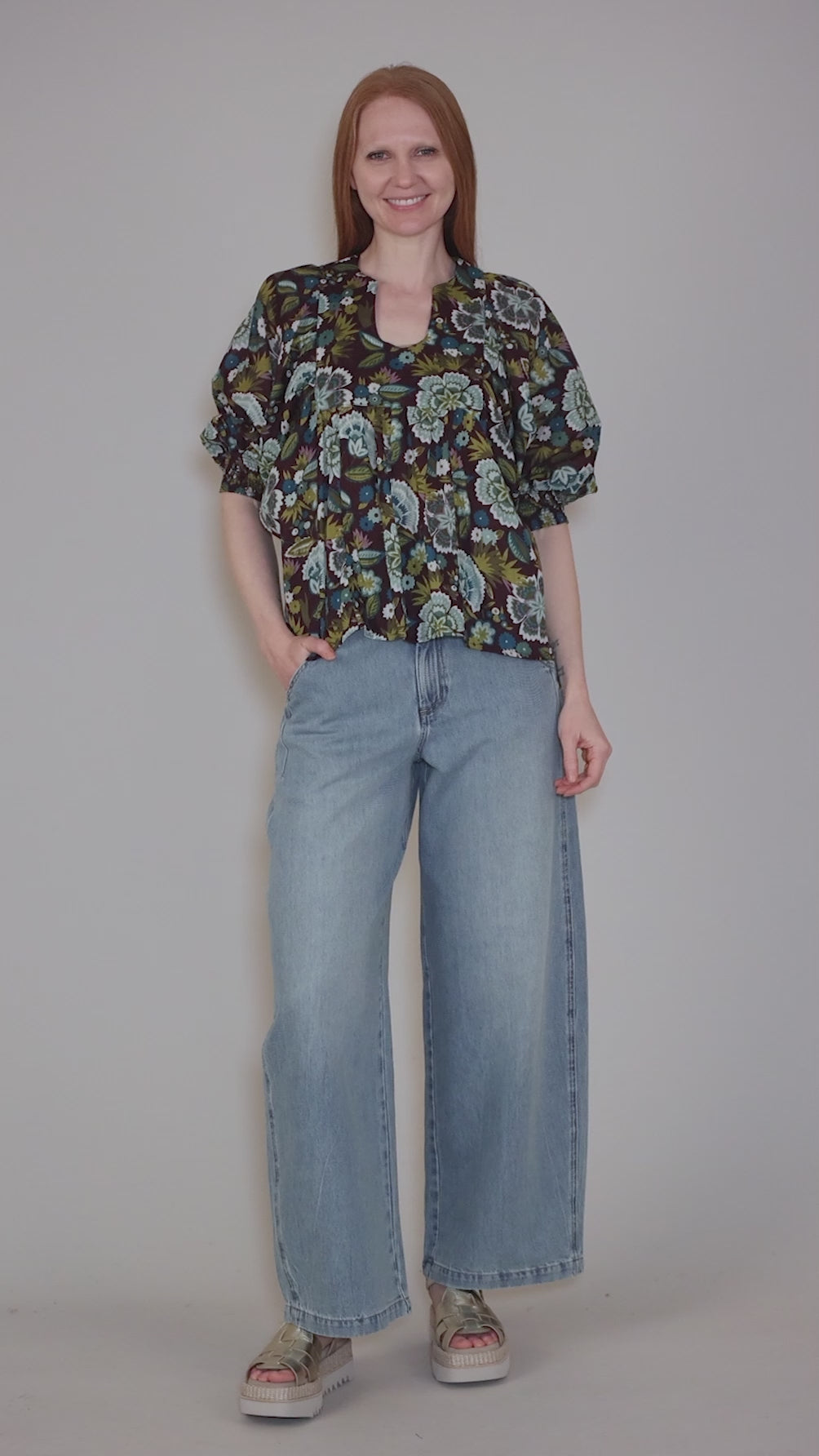 Anjou is crafted in a very fine, semi-sheer woven cotton, with a U-shaped neckline and a yoked bodice that sets up very full butterfly sleeves. The length is slightly cropped, adding to the boho-babe vibe.