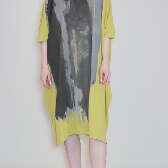 Dolman Drape Graphic Dress, Mustard