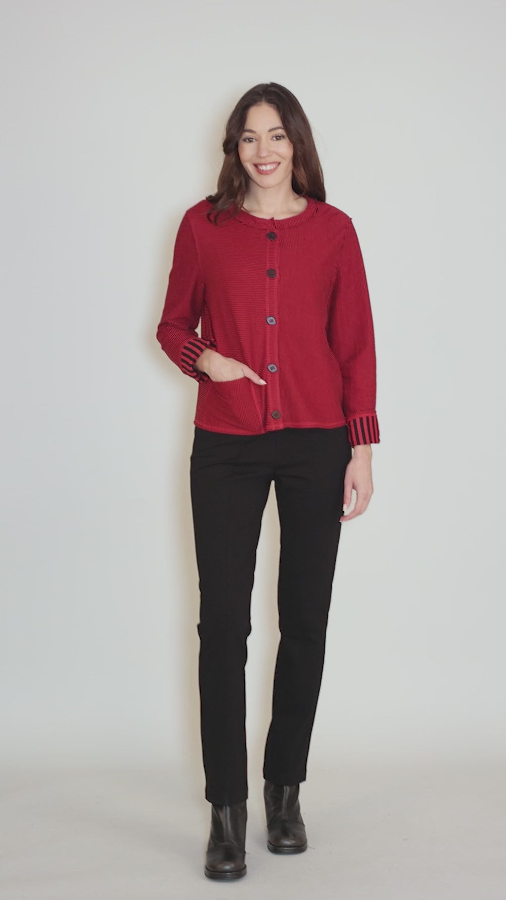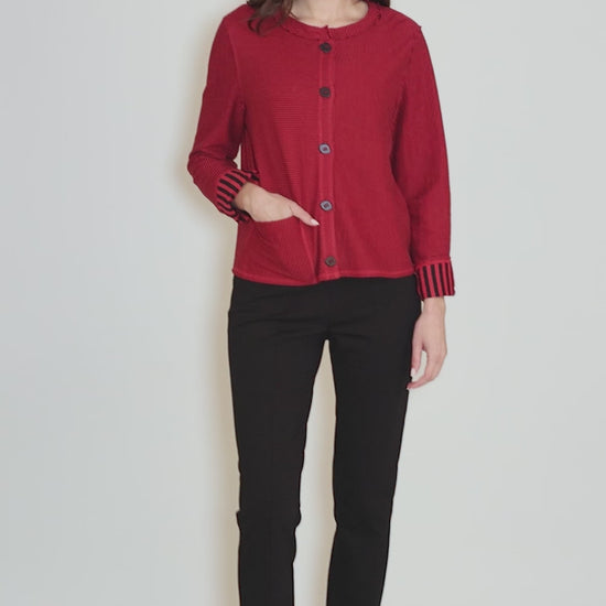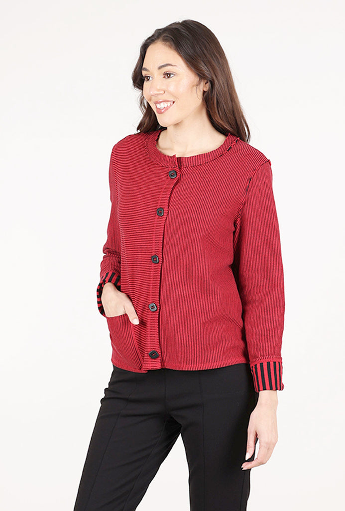 Double-Faced Stripes Cardie, Ruby
