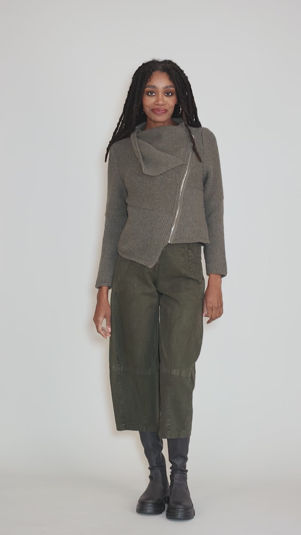Lurdes Bergada has a whole asymmetrical zipper thing going on this season, and we're totally down for it! This striking sweater is made in a chunky wool blend, with an off-center collar, long sleeves and an asymmetric construction. It skims the hip on most, making it a natural partner back to skirts and fuller-legged pants.