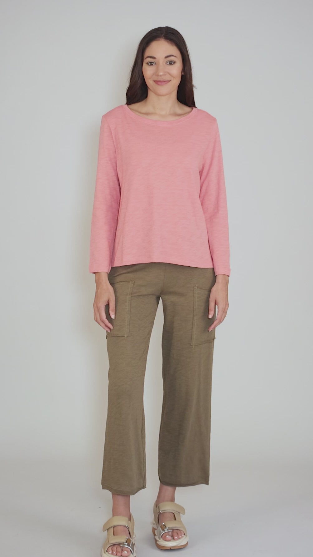 Crafted in a mid-weight cotton slub knit, this refined T-shirt has a boat neckline, a set-in shoulder and long sleeves. The body is modestly A-line, but the fit is a little more tailored than many Escape pieces.