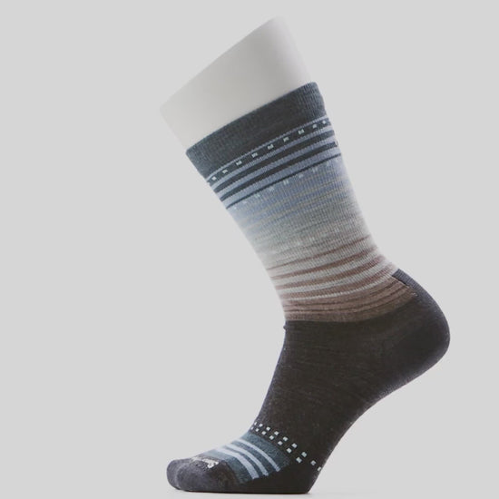 Smartwool's Everyday Stitch Stripe Crew Socks offer a secure fit for continuous comfort; it's made with responsibly sourced Merino wool for naturally soft odor control and temperature regulation.