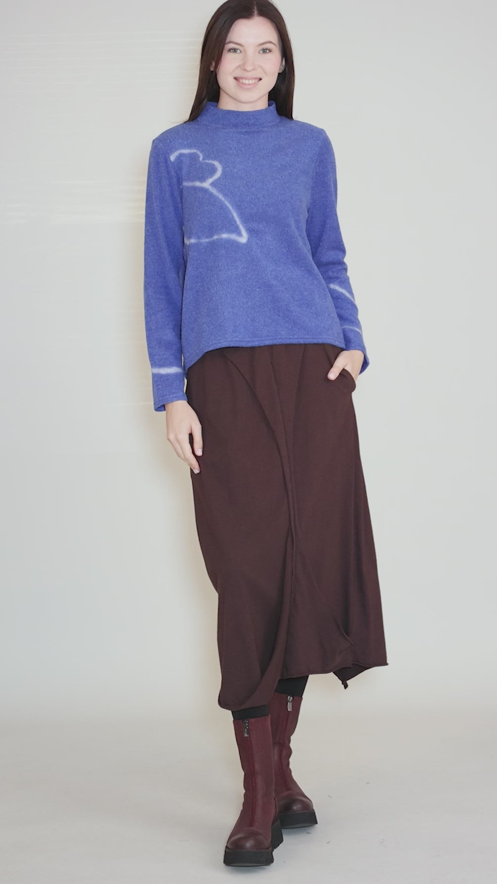 Done in a softly brushed poly blend, this relaxed top has a short funnel neckline, with a set-in shoulder and long sleeves. The body is a trim A-line, with a versatile, hip-skimming length. The fit here is fairly tailored.