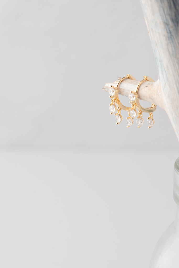 Our tiniest and sweetest huggies, crafted in high-quality 14K gold vermeil and set with sparkling cubic zirconia along the front. Each earring features four delicate opal doublets that dangle with soft, iridescent shimmer, adding just the right amount of movement and magic. A dreamy everyday earring or the perfect addition to your curated ear stack.
