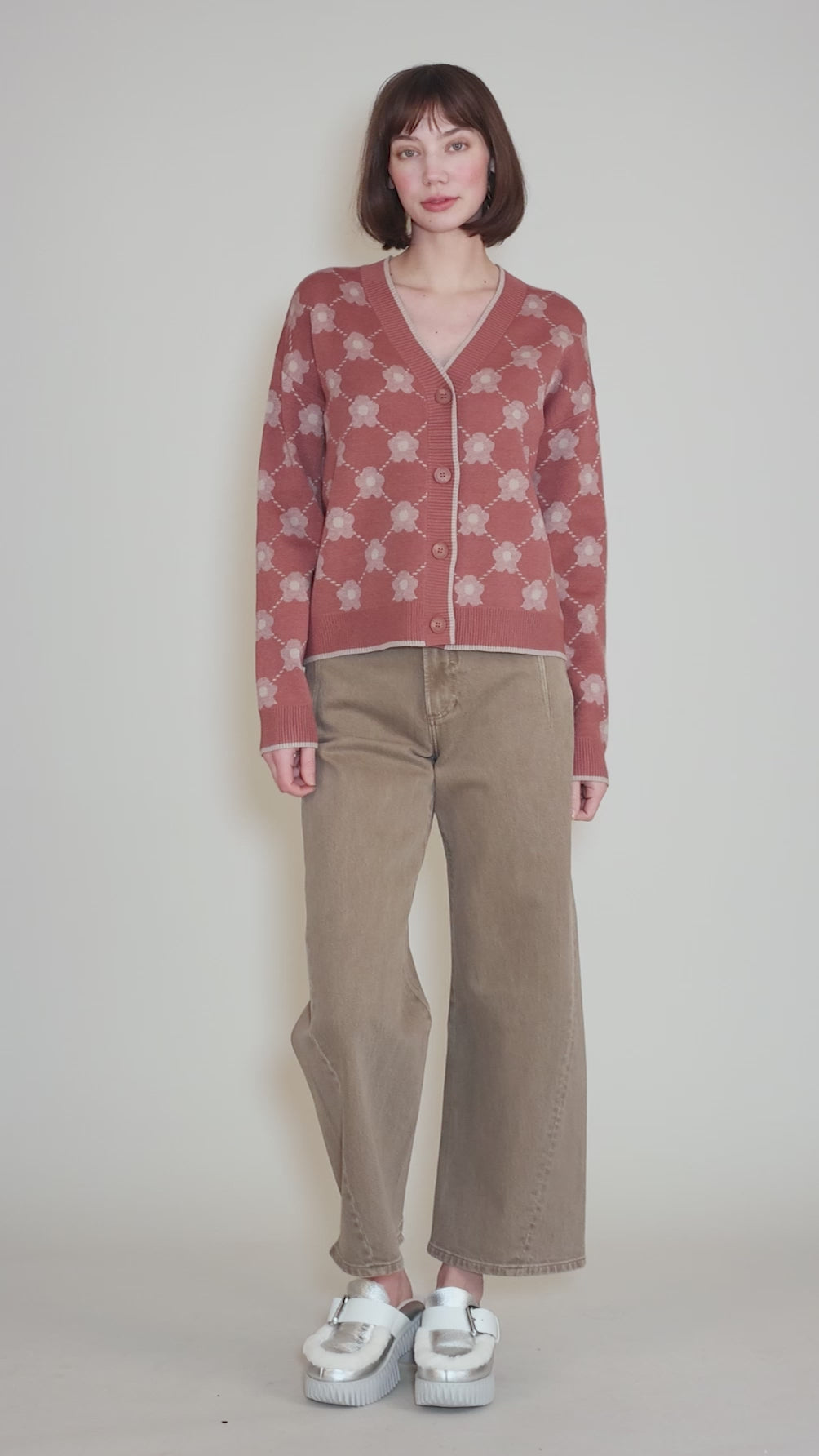 Knit in a soft cotton blend with a bit of innate structure, this transition-weight cardie has a V neckline, a slight drop-shoulder construction and extra-long sleeves. The body is relaxed and deliberately boxy. Running true to size to slightly large.