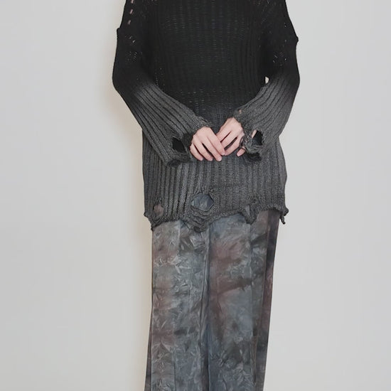 Made in a woven viscose with the hand and sheen of silk, these sweeping pants have been dyed by hand in Italy. They have an elastic waistband, with slit pockets on the hips and wide, full legs.