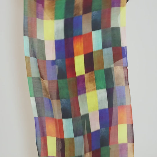 Made in a finely woven wool-silk blend, Hazel boasts a patchwork of brightly colored rectangles. It's lightweight enough to offer nearly year-round wear, breathable yet warm.
