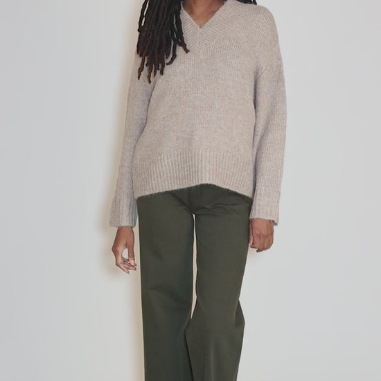 This jean is all about clean, from its spare lines to its crisp color. Penny has an extra-high rise, with a zip closure and set-in waistband. There are no pockets on the hips, though patch pockets sit on the rear; the legs are full and slightly flared. Running true to size, though slightly snug in the waistband. Penny is made in a mid-weight cotton twill.