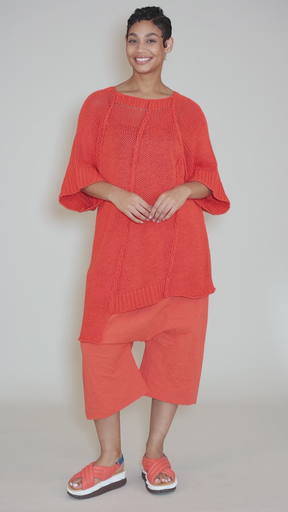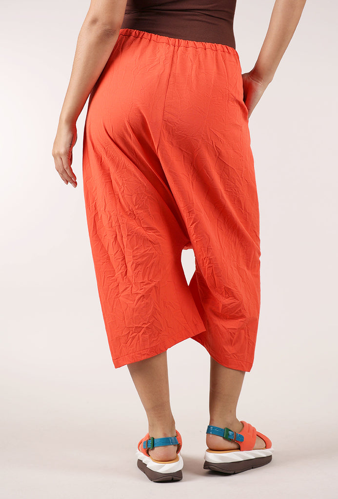 The fabric here is notable, a lightweight, crinkled woven with an innate structure. Ingrid has an elastic waistband, with slit pockets on the hips and a deeply extended rise. The fit here is quite roomy, though we find the waistband runs more true to size.