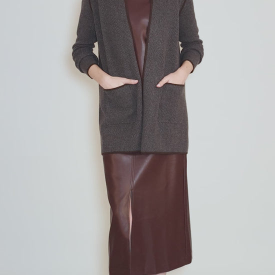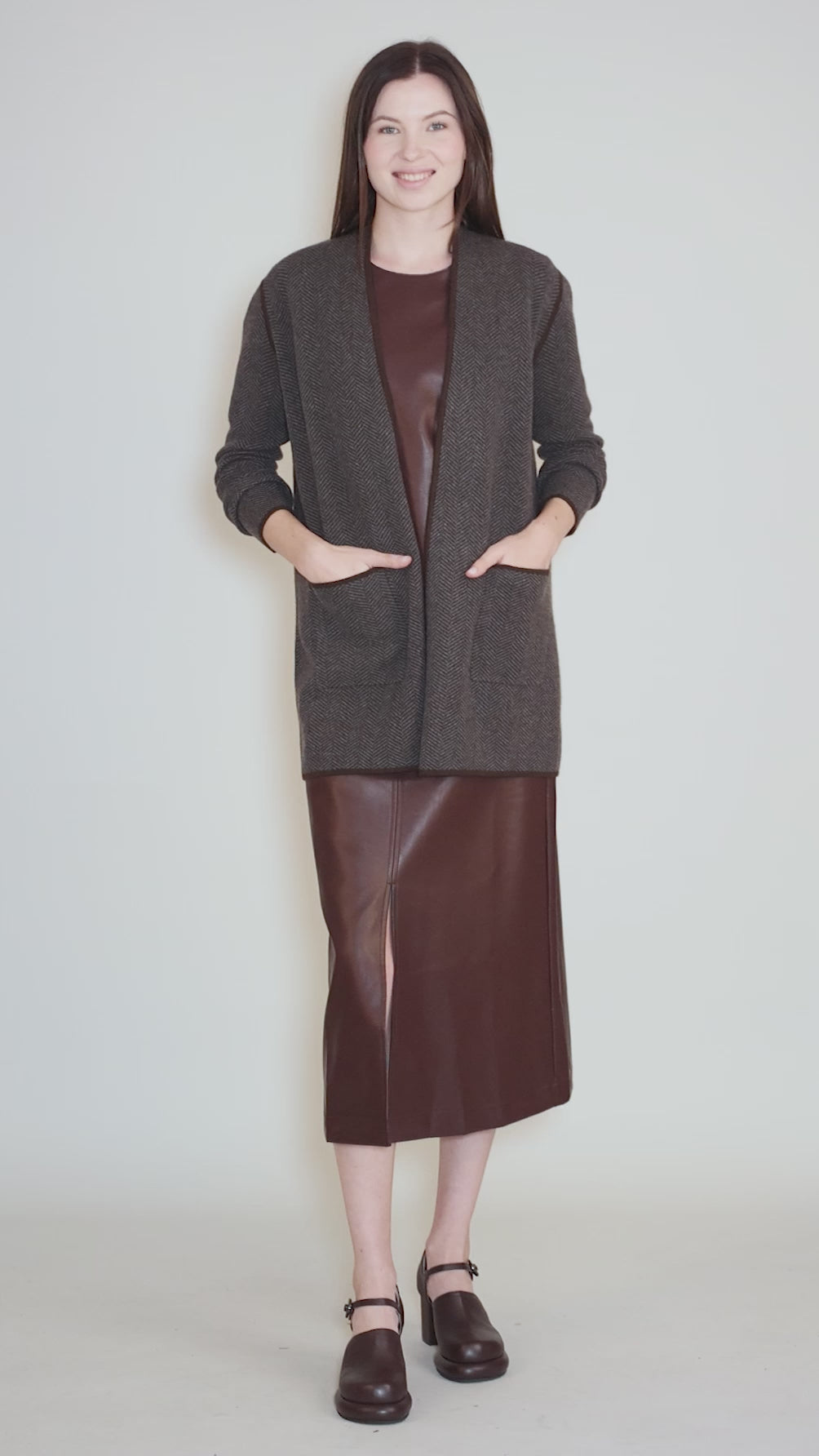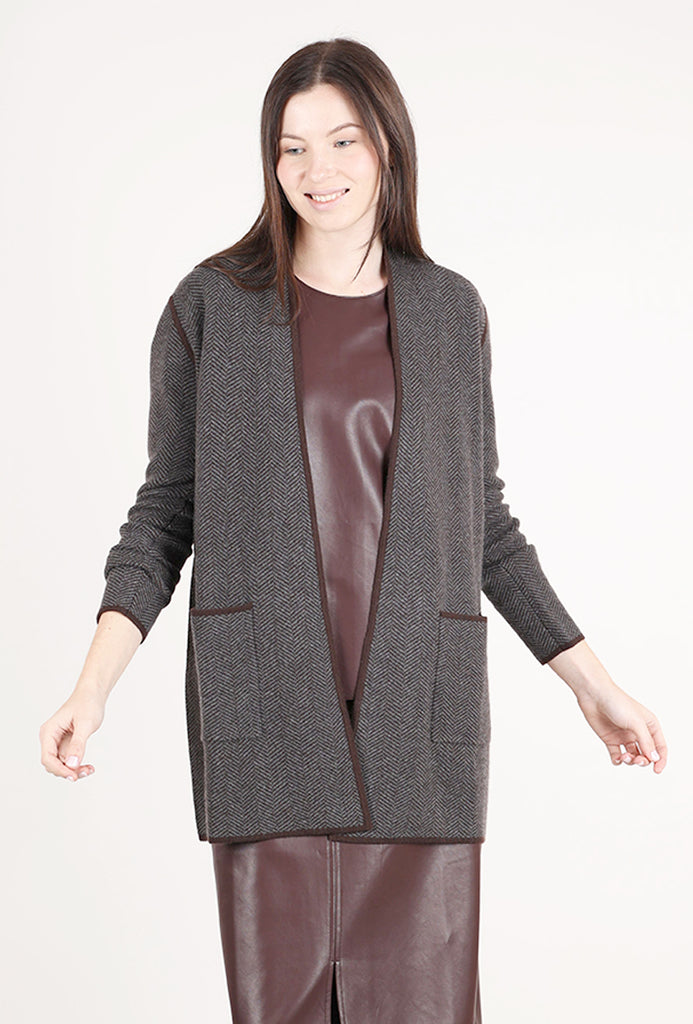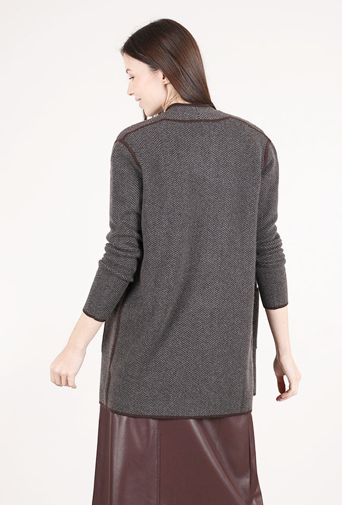 Jacquard Herringbone Cardie, Charcoal/Flannel