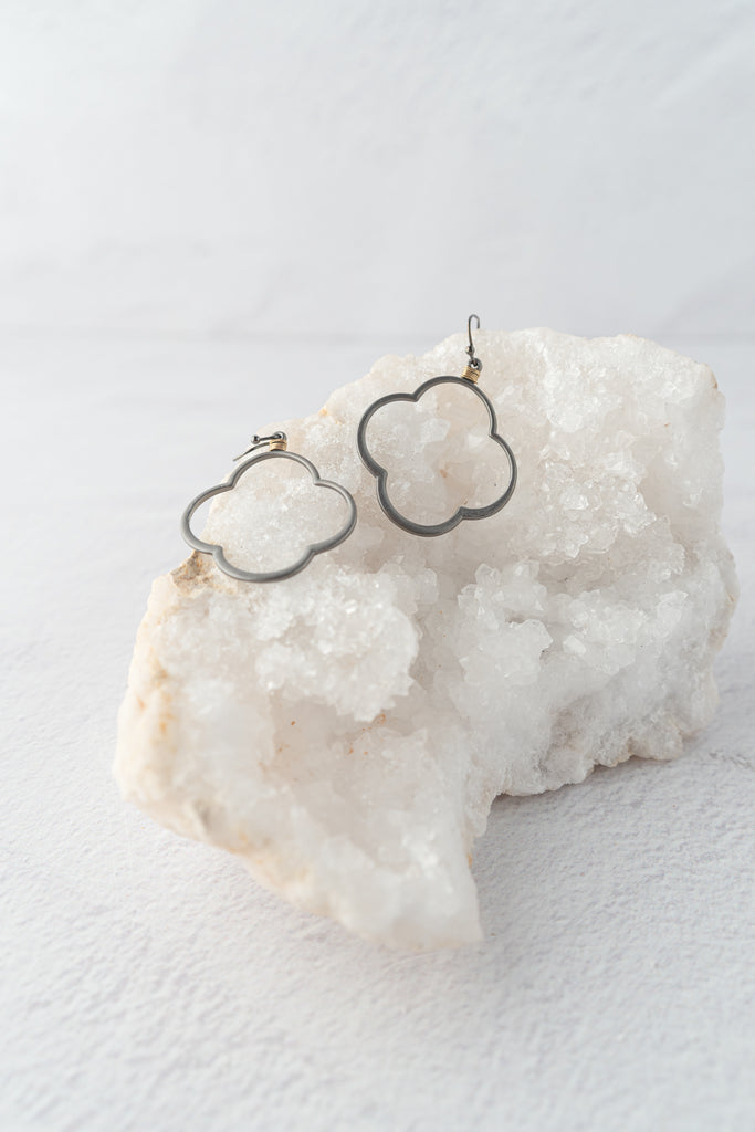 Sleek and modern, these open clover earrings feature a minimalist silhouette in a brushed gunmetal finish. Their understated edge and lightweight design make them a versatile accent for both casual and elevated looks.