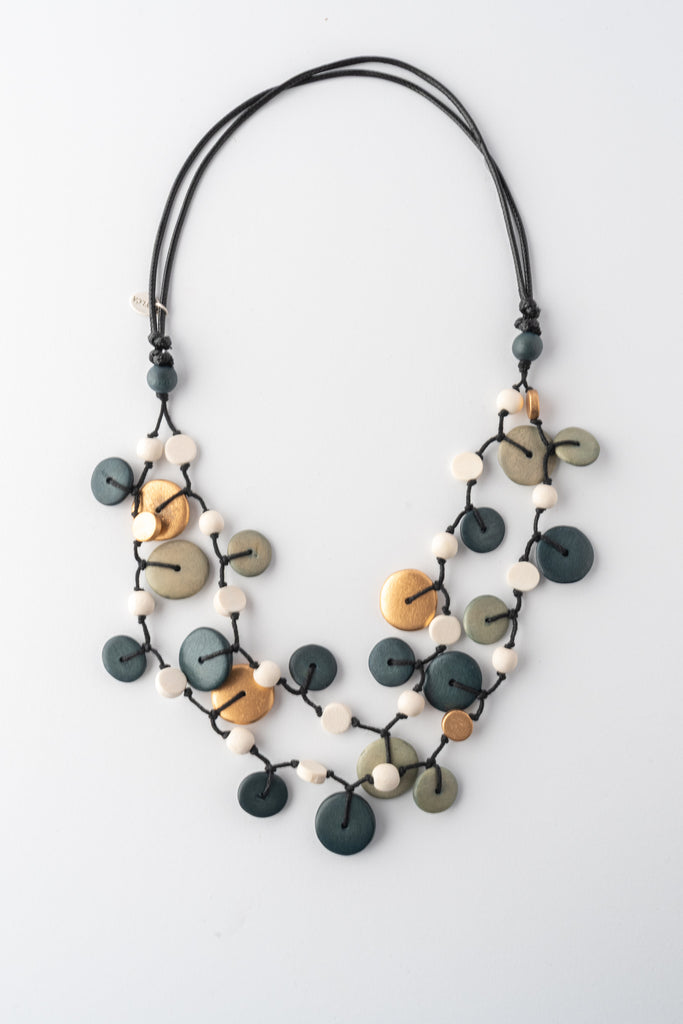 The Gray Juliette Drop Double Strand Necklace is a playful celebration of boho-chic design and artisan craftsmanship. Cream and gray wood beads are beautifully accented with shimmering gold metallic highlights, creating a sophisticated yet whimsical aesthetic. Hand-strung with dangling drop beads that move and sway with you, this lightweight double-strand necklace brings effortless charm and dimension to any look.