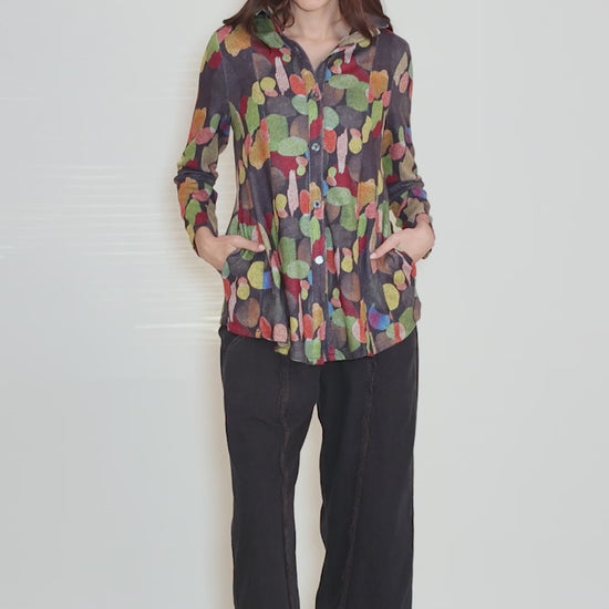 This shapely button-front shirt is made in a lightly brushed poly blend offering warmth and coziness in a tailored silhouette. It has a set-in shoulder, long sleeves and princess seaming throughout to create a flattering fit-and-flare effect. Running true to size.